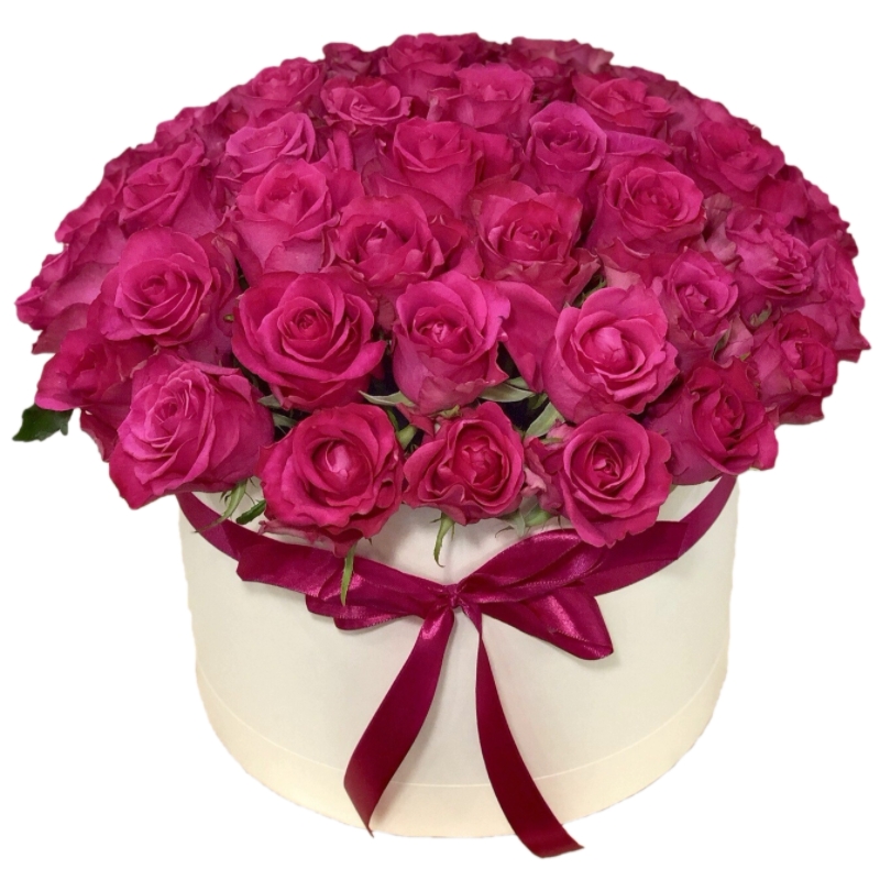 Букет состоит из 35 малиновых роз, коробка, оазис.