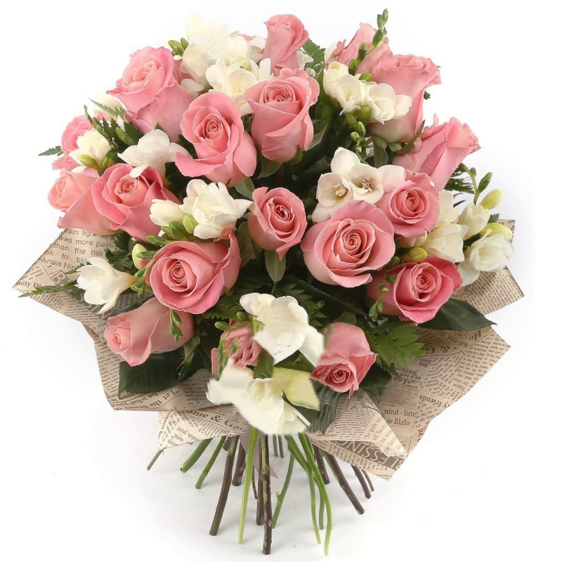 Букет из роз и фрезий в крафте
